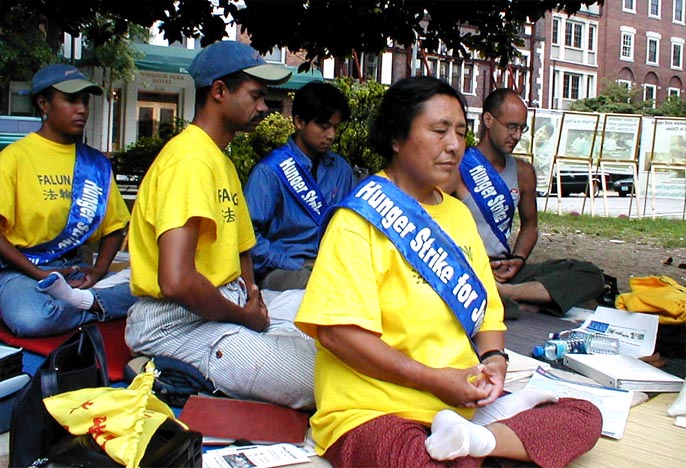 毛凤英:我们多伦多是从8月19日开始绝食的。每天大概有3、4个人,多的时候,有6个人,年龄都不等。有30岁的,有70岁的。他们大多都是采取48小时绝食,绝食人数一直没有间断,每天都有很多报名的人。我是采取了72小时的绝食、绝水。现在绝食还在继续下去。