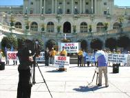 今天上午11时,来自华盛顿州,新泽西州以及华府地区的几十名弟子汇聚在华盛顿DC的国会山前召开记者招待会,宣读了启程声明,美国之音,路透社及自由亚洲等媒体到场采访并见证了整个过程。