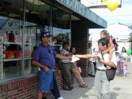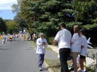 【明慧网2001年9月7日】9月2日,新泽西和纽约市的六十多名法轮功学员参加了新泽西州帕特生市的劳工节游行。法轮功的游行队伍受到当地居民热烈的欢迎,手拿法轮大法横幅和气球的学员们也不断地向街两旁的群众挥手致意,并不时地停下来表演功法,每次表演完时,沿路的群众都报以热烈的掌声。一些年轻人还模仿着学员的动作跟着练起功来,于是一位学员就热情地上前教她们。游行中学员们还一路散发介绍法轮功的报纸和小册子,使成千的当地居民闻得大法。