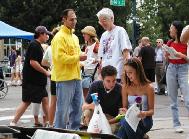 【明慧网2001年9月8日】在劳动节(Labor Day)的长周末,科罗拉多州的美食节(Taste of Colorado)从星期五到星期一连续四天在丹佛市的市中心举行。据统计,去年的美食节有五十万人参加,所以学员们认为这是一次非常好的讲清真相的机会。大家做了充份的准备,印了一万多张传单,希望尽可能多的人能了解到中国大陆迫害法轮功的真相。