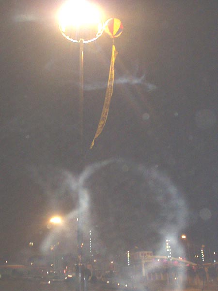 我们不会使用数码相机,因此所得不多,但却意外发现在照片上有着飞转的法轮和特殊的光晕。感谢师父慈悲的呵护。