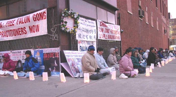 随后,大家和全世界大法弟子同步发正念,用自己纯净而坚定的正念清除迫害大法的一切邪恶。在夜色来临时,一盏盏烛光灯点燃,悼念为坚持“真善忍”信仰、为正法而献出生命的大法弟子们。