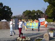 与会全体学员多次发正念,边学法边交流了当前在学法、发正念、讲清真相这三件大事上,如何做得更深入、更扎实、更自觉。13日天气晴朗、风和日丽,寒冷的冬天竟是3月中旬的气温。大家一早就赶到了名古屋市最大的公园--名城公园,集体三发正念,炼功。下午一点准时开始了洪法游行。队伍肃穆、整齐,沿途散发着讲清真相的资料,给名古屋广大市民留下了深刻、崭新的印象。