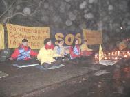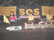 【明慧网2002年1月14日】1月12日,星期六,丹麦大法弟子与全世界30多城市、数千名法轮功同修一起,在中国使馆前进行了烛光守夜活动,强烈抗议江泽民犯罪集团在中国日益疯狂,不断升级的虐杀法轮功学员的罪行,呼吁全世界善良的人们一起来制止这场发生在现代人类社会,最令人发指的国家恐怖主义。