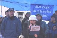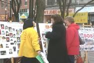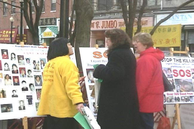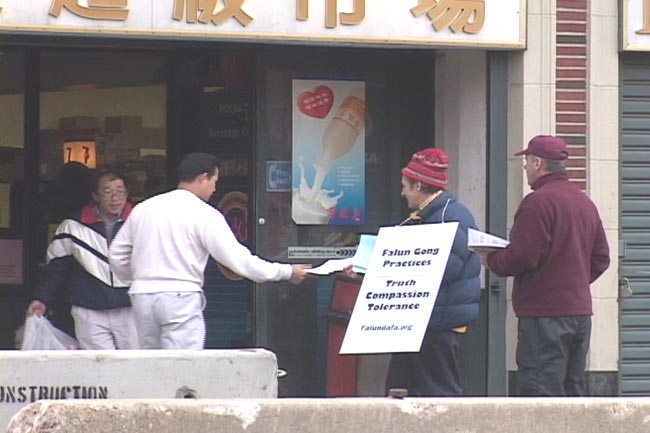 上午十一点半左右,十几名学员分成五个小组,分五个方向向唐人街中心周边地区开始了近四个小时的步行、讲真相活动。学员们身上挂着写有“中国,停止杀害法轮功修炼者!”,“二十二天,杀害二十人”等英文展版,沿途发放传单,向人们讲述过去二十二天内在中国发生的血腥暴行,向人们揭露过去三十个月来江泽民流氓集团对千百万大法弟子,处心积虑地阴谋与迫害。善与恶、正与邪的对比是鲜明的,有一西人(不修炼)闻此令人发指的暴行后,义愤填膺,立即用路边的公用电话拨通传单上的杀人凶手电话,谴责其恶行,告诉恶人:全世界都在谴责这场邪恶的迫害!