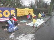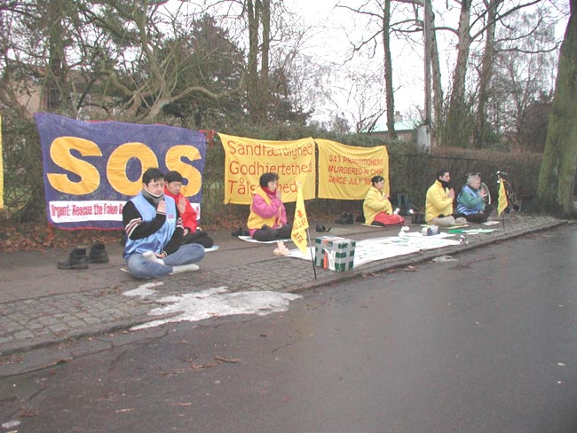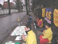 因为是休息日,路上行人不多,但是,每一位路人都愉快地接受了我们的真相传单,几乎人人都知道发生在中国的残酷镇压,并表示义愤。