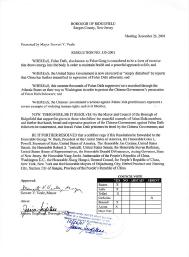 山脊地市市长和市议会决议,支持作为和平典范的法轮大法修炼者,强烈谴责中国(江泽民)政府对法轮大法修炼者的残酷镇压,要求释放所有被监禁的法轮大法修炼者;