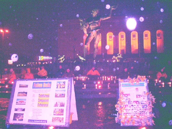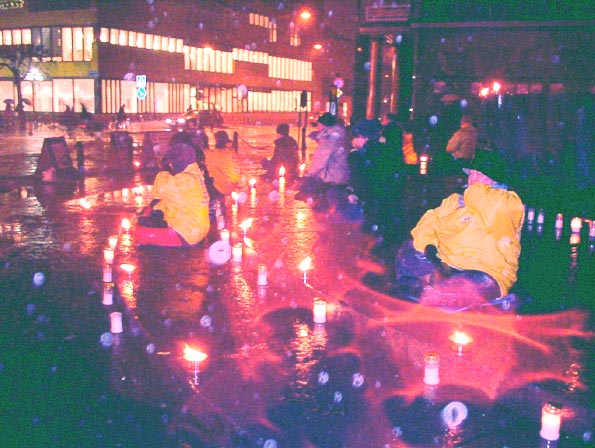 【明慧网2002年1月17日】2002年1月15日晚,瑞典大法弟子在哥德堡举行了烛光悼念活动。摇曳的烛光中无数的法轮在飞舞,预示着法正人间时刻的来临。