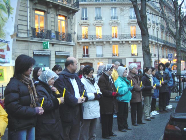 巴黎法轮大法弟子中国使、领馆前和平抗议虐杀(图)