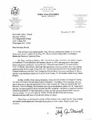 美国纽约州议员托比.安.斯塔维斯基(TOBY ANN STAVISKY),2001年12月28日致信美国国务卿考林.鲍威尔,要求美国政府深入调查美国永久居民滕春燕医生在中国被捕和判刑一事。