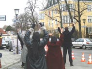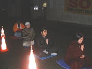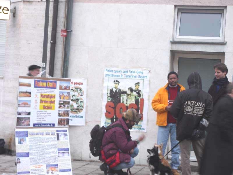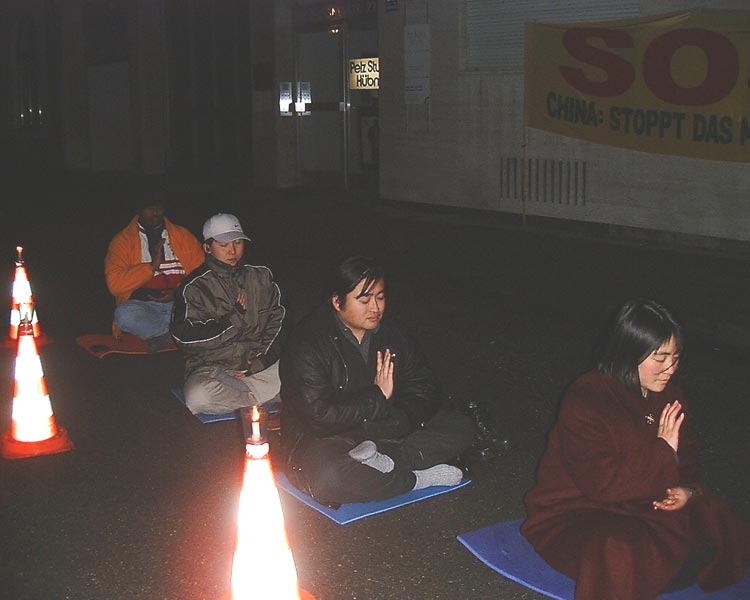 【明慧网2002年1月25日】新年伊始,从中国又传来悲痛的消息--邪恶的江泽民政府在短短22天内将20多名坚信真善忍的大法弟子残酷迫害致死。就在百姓理应合家团聚的节庆之时,血腥的暴行依然在肆无忌惮地上演,江泽民的暴徒们竟然将一位大法弟子在光天化日之下在街上活活掐死,其残暴令人发指。1月19日,20日连续两天,德国慕尼黑大法弟子在慕尼黑领馆前举办了烛光悼念中国大陆被迫害致死的大法弟子的SOS紧急救援活动,向更多的世人讲清真相,揭露江罗集团的邪恶。