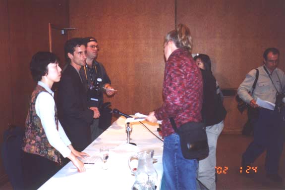 | 新闻发布会 | 康妮在日内瓦炼功的照片 |