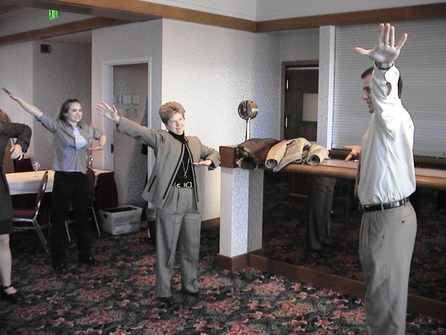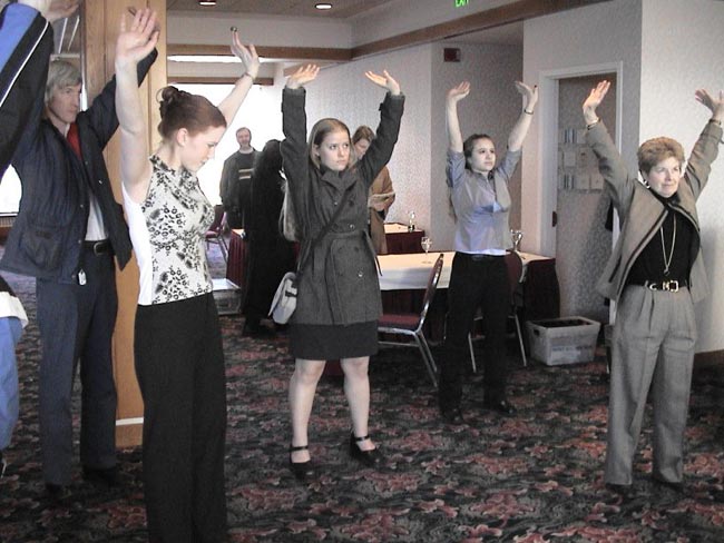 的情况。此外,他还回答了与会者的提问。听众们对法轮大法在大陆的遭遇纷纷表示同情。午餐会后,许多人士还留下来学习了法轮功的功法。