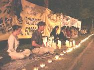 【明慧网2002年1月3日】澳洲部份弟子一直轮流坚持在坎培拉(Canberra)中国驻澳大使馆前绝食请愿,今天(1月1日)进入了第132天,同时也迎来了2002年这新的一年的到来。