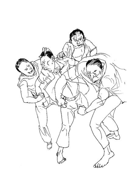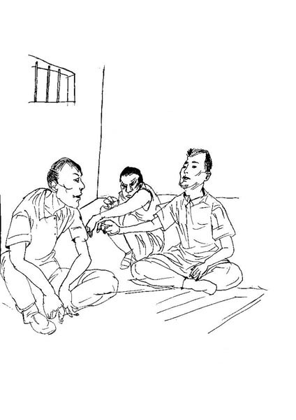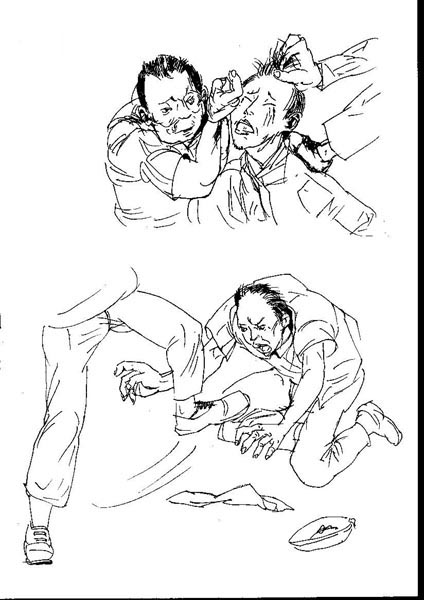7.同年12月3日,他又被非法转入刑拘第三号监室。在那里受到了犯人们惨无人道的迫害。犯人们让他睡在水泥地上(长达四、五十天)。每次晚饭后都毒打他,有一次王金国被打得发出了痛苦的声音,这时犯人卜明星、刘志国等三人象恶狼一样一拥而上,又把他狠狠地摔在地上。8.还有一次,犯人用手指狠狠地弹他的眼球,痛得他眼泪哗哗直淌。恶徒却称之为“弹灯泡”。犯人还常常穿着硬硬的皮鞋,照他的心窝使劲地踢,这经常使他上不来气,疼痛不已。9.最严重的一次,狱霸卜明星给王金国“打榨菜”,他抡起双拳左右开弓,拼命照王金国脸上不知打了多少下,致使王坐立不住,大口大口地呕吐。此时王金国已被迫害得心、肺、肾功能急剧下降,脑袋肿大,呼吸困难,尿血,周身无力,血满衣襟。面对这一幕幕,看守所的管教却视而不见,反而鼓励犯人们的暴行。