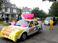 2002年9月28日,大法弟子参加了爱荷华州奥克谭博节的游行。学员们每到一处便停下来做功法演示,人群中掌声、赞叹声和欢呼声不断