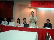 记者会由台湾法轮大法学会理事长、台大经济系张清溪教授主持,与会台大师生包括:政治系主任明居正教授、新闻研究所所长张锦华教授、法律系教授谢铭洋,理学院秘书戴瑞鹏,研究生吴政翰,大学部学生吴禀勋、李佳鸿、张东旭等。今年七月曾于美国华盛顿国会山庄前,发言支持法轮功的立法委员陈茂男,闻讯也赶来声援致意。