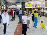 【明慧网2002年10月14日】2002年9月18日到28日,瓜德路普的法轮功学员利用在一家大型购物中心内举行的体育节的机会介绍法轮功。在这十天当中,众多的人们得以了解法轮功真相。学员们每天都展示功法。体育节的主办者和购物中心的负责人均向学员们表示祝贺。
