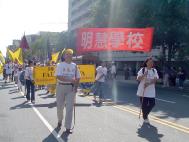 【明慧网2002年10月14日】两天来的阴霾一扫而光。10月5日周六,阳光灿烂,大华府地区台湾侨学界一年一度的庆祝双十节游行在华府中国城恢复举行。去年因911恐怖攻击事件而停办了一次。