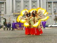 包括加州副州长在内的十几位联邦议员、州政府官员、市长和市议员签发了对“法轮大法月”的褒奖令或贺信。旧金山市议员克利斯-戴利在庆祝仪式上发了言,他高度赞扬了法轮大法和法轮大法学员,还特别指出,“法轮功学员的善良让我印象如此深刻,每一个我接触的学员都是那么好的人。”“法轮功之友”美西主任,执教于旧金山州立大学的黎诚信教授也发了言,他指出,“在江xx下台之后,我们希望他的下一任胡锦涛能停止迫害,如果他不能,我们将要求他的下一任停止迫害,不管是哪一个领导人,他都是暂时的,而真、善、忍是永恒的。”