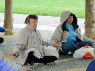接下来,二十位学员表演了法轮功的功法。而富有艺术天才的学员,以传统的中国歌舞表演,弘扬中华文化,吸引了众多的群众观赏。