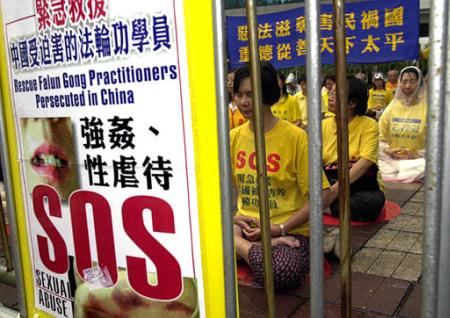 2002年10月1日,法轮功学员在香港会议展览中心外炼功请愿,抗议中国(江氏集团)对该运动的迫害及其在港制定反颠覆法的计划。当日多家外电对此进行了报导。