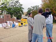 下午亚特兰大汽车之旅同来自达拉斯的五位学员在泰勒市政厅前及泰勒市中心广场联合举行新闻发布会,并接受泰勒报和KLTV电视台现场采访。五位学员真诚,全面地向本地报界,电视台介绍大法真相,揭露了江氏集团在中国残酷镇压、迫害大法及大法学员的暴行,并演示了五套功法。来自DC的徐教授(原清华大学副教授)讲述了他的遭遇。他的妻子因修炼法轮功在国内被关押,十三岁的儿子现无人照管。新闻发布会后,大法学员庄严地发正念,清除另外空间一切邪恶因素。