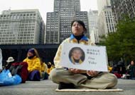 路透社图片:法轮功学员在芝加哥抗议江泽民迫害无辜