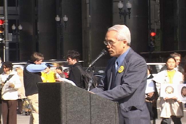 法轮功学员在芝加哥举行新闻发布会及抗议游行(图)
