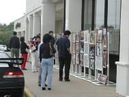 周六、周日的两天阴沉沉欲下雨的样子,但学员们坚持按计划举行活动,因为大家都清楚地意识到对中国人民讲清真相有多么的重要和紧迫。真相图片摆放在购物中心橱窗的外面,人们从很远就可以看到。这次主要展出的照片包括99年以前大法在中国的情况,多幅中国主要城市学员炼功的巨幅照片,大法在海外的洪传盛况,和江氏政府对法轮功的镇压。学员们准备了各种真相材料,包括英文、越南文等。许多中国人都高兴的接过了学员们的真相资料。