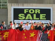 学生们挥舞小旗,唱着歌唱共产党和歌唱社会主义的歌曲,据了解,中领馆为吸引华人学生前来参加欢迎仪式,出资购买新衣、免费提供午餐、给予现金补助。一位芝加哥大学学生说,领馆为学生购买高级皮衣以吸引学生前来参加欢迎活动。然而,具有讽刺意味的是,前来参加欢迎仪式的学生们可能并未意识到,欢迎队伍的背后,竟立着一面巨大的广告招牌,上面赫然写着,“FOR SALE”(出卖)二字。