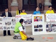 八名大法学员分别讲述自身和亲人遭受迫害的事实:有的学员的70多岁的老母亲因修大法而被关押一年之久,受尽折磨,现在仍被监管、限制人身自由;有的妹妹全家被几次抓压,年幼的孩子生活在惊吓、痛苦之中,心灵倍受创伤;有的年近古稀的母亲因修大法无辜被关进精神病院3个月;有的正在做饭的妻子被强行带走,数月毫无音信,中秋佳节结婚30周年纪念日独处的悲凉;有年轻夫妻被迫离散,生死难卜;有的讲述了失去父亲的痛苦……每个学员失去亲人的苦难经历深深打动了记者和过往游人。