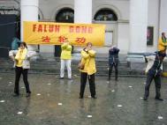 德国南部及奥地利萨尔斯堡学员在慕尼黑领馆前持续发正念,与在北美近距离发正念清除另外空间的邪恶物质的众多弟子遥相呼应。领馆前时而狂风阵阵,时而阴雨绵绵,晚上天气非常冷。26日下午,天空出现一道巨大的彩虹,光彩夺目。