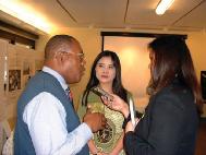 | 来宾观看图片 | 泛亚电台记者枸责慕女士采访费城公益图书馆馆长希尔顿先生和独立分馆馆长张女士 |