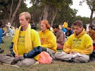 千余名学员在克劳福得镇和平抗议江氏迫害
