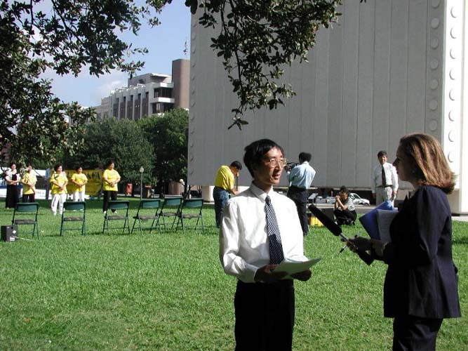 发布会上,五名法轮功学员代表分别讲述了大陆亲属及他们本人遭受江氏集团迫害的情况。达拉斯本地的主要媒体,和新唐人电视台、世界日报等中文媒体作了现场采访。