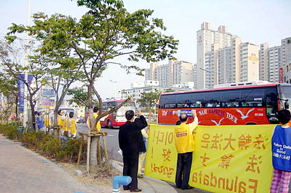 9月28日下午,首批汉城的大法弟子于当晚11点半抵达釜山,安顿完毕,我们先发正念。然后,由一些同修自发组织到中国驻当地领事馆通宵发正念。通过“世界杯”期间及其他大型洪法活动积累的经验,我们意识到发正念的重要性。如果不排除中国驻当地使、领馆对应的另外空间中存在的邪恶因素,它们就会给我们的洪法活动带来干扰。