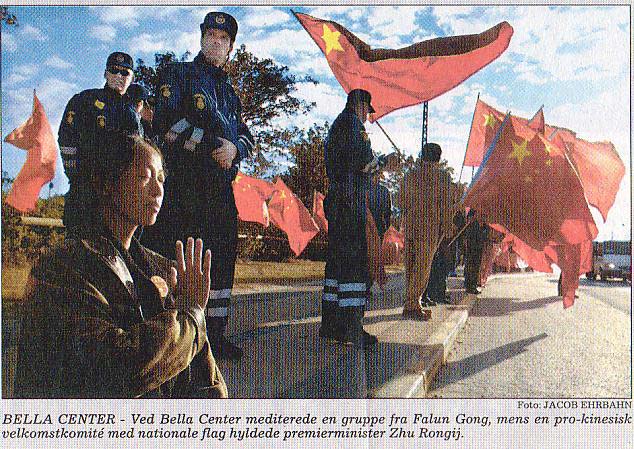 丹麦最大报纸刊载法轮功学员在欧亚峰会期间请愿照片(图)