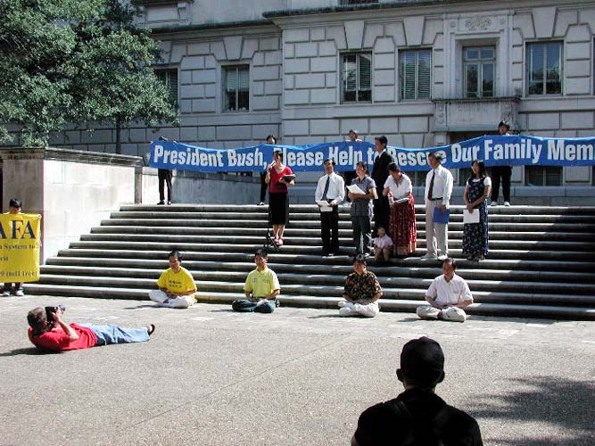 【明慧网2002年10月7日】美国德克萨斯州的“紧急救援”小组10月4日到达了德州首府──奥斯汀市。在德克萨斯州大学校园的主楼前,法轮功学员举办了“紧急营救在中国受迫害的亲属”新闻发布会。