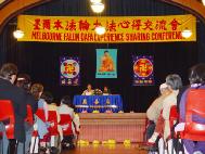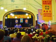 经过精心布置的会场气氛祥和。7个小时的心得交流会后,是大法弟子们在百忙中排练的一台别开生面的“回归之路”音乐会。参加演出者最小3岁,最大70多岁,全部是业余演员,绝大部分是从来没上过舞台的。但是他们用心的表演却赢得了阵阵的掌声和感人心肺的泪水。台下在坐的有市议员、社团知名人士、法轮功家属及朋友。