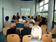 10日下午博览会组委会特意为法轮功安排了一场报告会。一位职业为自然疗法治疗师的法轮功学员作了题为“法轮功的真善忍与健康”的专题报道,受到与会者的好评。两位来自日内瓦州和弗赖堡州的议员,专程来到会场出席报告会,并来到法轮功展台与学员交谈,再次表达了她们对法轮功的支持。