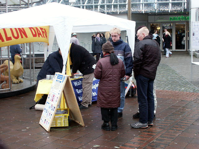 【明慧网2002年11月14日】德国不来梅市(Bremen)是一座著名的港口城市,有许多优美的传说。十一月九日,不来梅当地和附近的大法学员一起举办了洪法信息日。