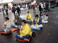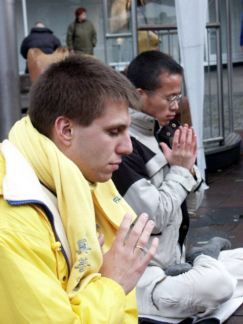 在中间休息的时候,我们介绍法轮功在中国受到的迫害,讲中国的法轮功学员只是因为炼功做好人,就被抓、被打、被酷刑折磨、甚至被迫害致死。居民们纷纷摇头,表示太不可思议了。有一位大学站市的居民说,下次那个独裁者来,她也要去请愿。