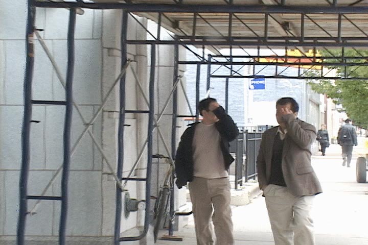 | 2002在8月27日郑继明(音,右)在进法庭时遮脸回避拍照。 | 2002年11月5日翁育军(音)从此处出来后被捕。2002在11月10日摄。 | 芝加哥库克郡法庭 |