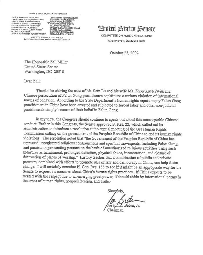 “这些都是没有骨气的行为,”加州议员汤姆.兰托斯从法轮功学员处听到消息后补充道。