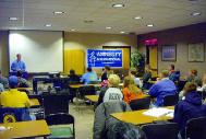 在图片展的基础上,大赦国际帮助我们成功举办了一场揭露江氏集团迫害法轮功的专题讲座。几名学员也驱车赶来支援。讲座首先由一名历史系专攻中国历史的老师介绍了中国及XX党的政策和历史,中国的人权状况等背景资料,然后讲述了她对这场镇压的起因的理解。之后放映了功法的简单演示和13分钟的录像片“SOS!紧急救援中国被迫害的法轮功学员”。一个个真实而又悲壮的场面打动了在场的观众。接下来由身为该校在校学生的学员讲述了自己在国内两次被关押的亲身经历,使观众们感受到了这场迫害其实离他们并不遥远。然后由一名曾因去天安门请愿而被抓被驱逐的美国学员介绍了他为什么要去和他在中国的经历,进一步引起了观众们对迫害的深切关注。最后四名学员演示了五套功法,展示了大法的美好及祥和。原来预计一个小时的讲座持续了近90分钟,三、四十名观众在给市政府、州参、众两院议员的联名信上签字之后仍迟迟不愿离去,继续留下和学员们交谈。