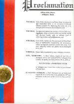 德克萨斯州阿灵顿市市长办公室鉴于,法轮大法,亦称法轮功,是一项和平非暴力的高层次中国传统功法,通过柔和的动功及打坐来改善身心健康;并且鉴于,对很多人来讲,修炼法轮大法明显地减轻了压力,全面增进了身心健康,最终能使人开智开慧;并且鉴于,法轮大法强调“真、善、忍”的原理,已使无数人摈弃了不良习惯,转而追求更有意义的生活;并且鉴于,阿灵顿市有许多居民修炼法轮大法。