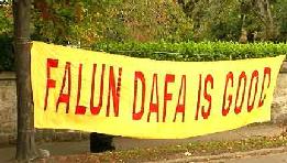 大法弟子在中领馆对面的草坪上集体炼功,向行人发放真相资料,并且每整点,半点齐发正念。行人纷纷驻足接受大法资料,并询问当地大法炼功点。往来车辆鸣笛表示支持与同情。当地警官从警车内向学员挥手致意打“V”字手势。