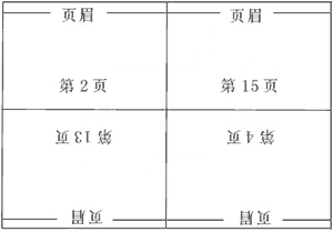先放一张A4的打印纸,输入页码 16,1,版数为2版,按纸型缩放为16开纸(或A4纸)。(即一张纸先打一半)再按“确定”按钮即打印此页。将打印完的这页转180度再原样放回打印机,然后再输入页码14,3,版数为2版,按纸型缩放为16开纸。再按“确定”按钮打印此页(即打纸的下一半)。这样打出来的结果是页脚对着页脚。页眉在纸的两个顶端。注意放纸的时候一定要搞明白顺序,这是一个非常重要的环节。)然后再打另一面,顺序跟上边的一样,输入页码2,15,版数为2版,按纸型缩放为16开纸。最后输入4,13,版数为2版,按纸型缩放为16开纸。这样一张纸的模板就出来,另外的几页依次类推。