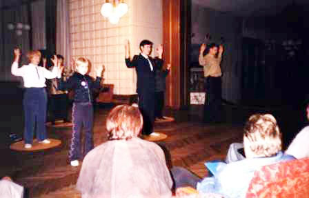 我们决定顺其自然地在听众面前发言和演示功法。结果听众对法轮大法的原则和功法非常感兴趣。